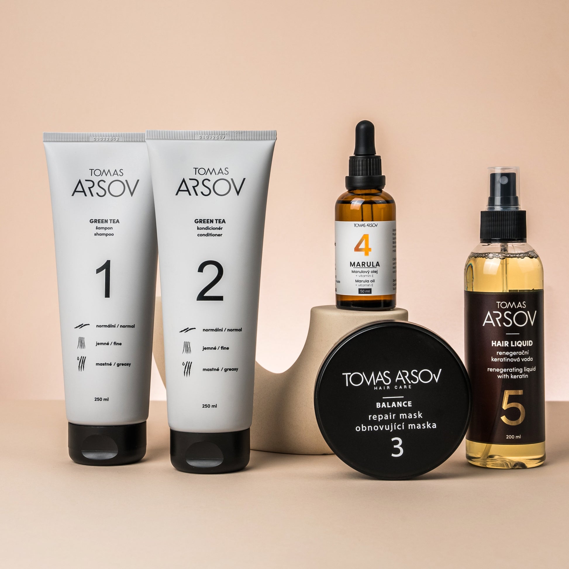 „Основах марката TOMAS ARSOV, за да ви помогна да разберете косата и скалпа си и да ви покажа как да се грижите правилно за тях. Имам собствено фризьорско предаване по телевизията и управлявам салон в Прага, където 20 от нашите професионални стилисти предоставят експертна грижа за косата всеки ден.“